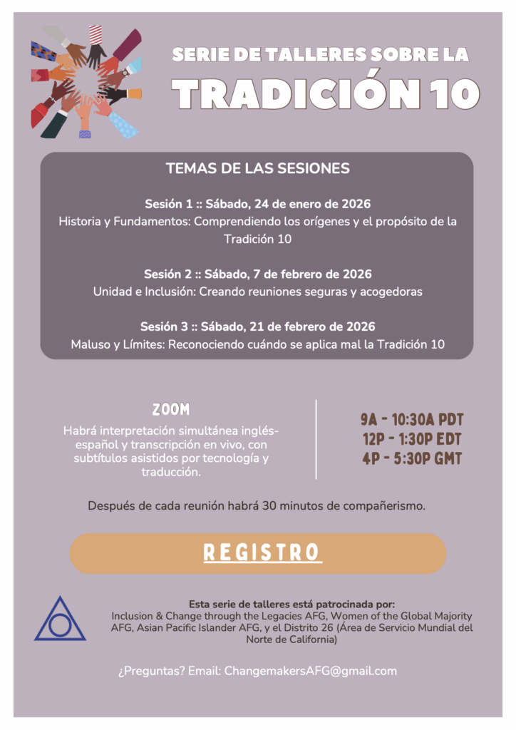 Co-sponsored by Inclusion and Change through the Legacies AFG, Asian Pacific Islander Diaspora AFG, Let It Begin with Us: Women of the Global Majority AFG, and Northern California Al-Anon District 26